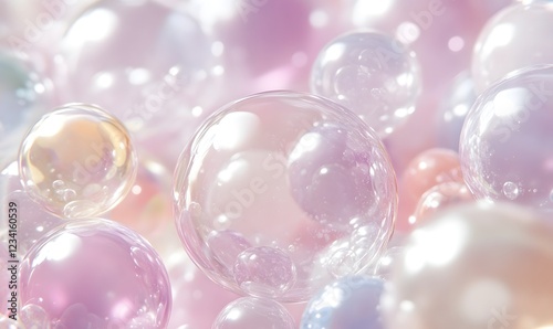 Pastel bubbles float, abstract background, dreamy, soft lighting, ideal for cosmetic ads
