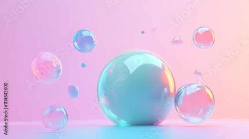 Pastel Bubbles Float Against Soft Pink Background
