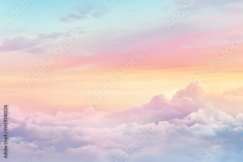 Pastel colored sky with fluffy clouds creating a dreamy and ethereal atmosphere.