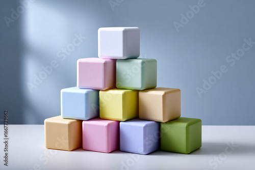Pastel Cube Stack Pyramid Geometric Shape Still Life Arrangement