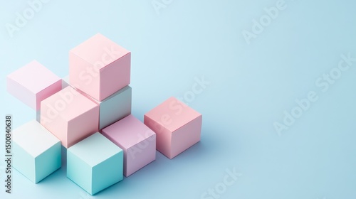 Pastel Cubes Composition on Blue Background, Geometry , Abstract