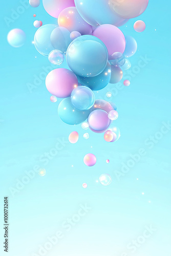 Pastel floating bubbles on light blue background