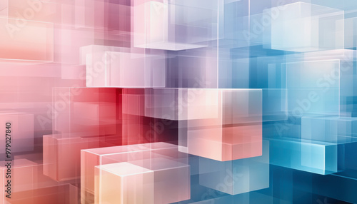 Pastel geometric design, blocks, overlapping, soft pink, blue, cream tones, abstract pattern