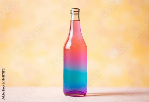 Pastel gradient bottle, vibrant background, colorful, playful design, studio, rainbow