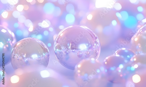 Pastel iridescent spheres, bokeh background, abstract, dreamy, design element