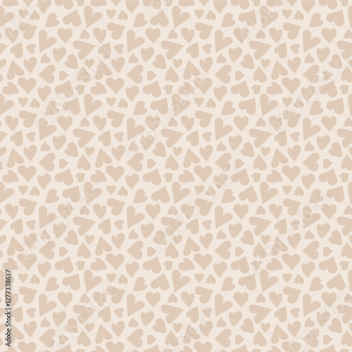 Pastel Khaki Tan Hearts Scattered on Pale Beige background creating a seamless pattern print background