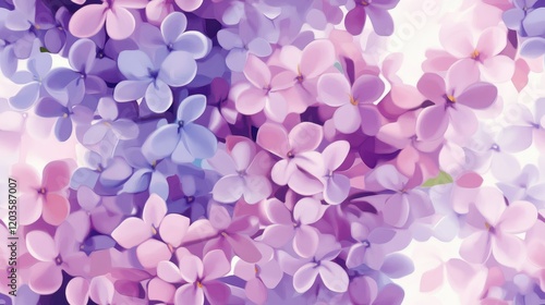 Pastel Lilac Delight, intricate seamless pattern of mini lilacs in soft purple hues, perfect for textiles and elegant designs