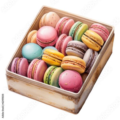 Pastel macarons in a box isolated. Watercolor illustrator.