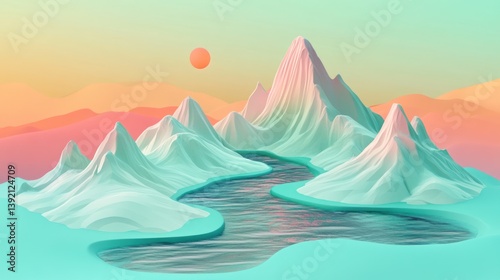 Pastel Mountain Landscape with Lake, Digital Art, Background Use