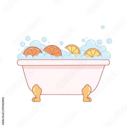 Pastel Orange And Lemon Slices In A Foaming Bathtub