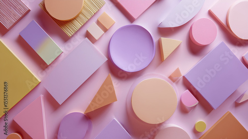 Pastel Paper Shapes Abstract Art on Pink Background