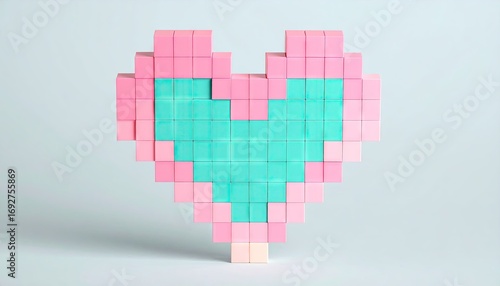 Pastel Pink and Teal Voxel Heart Cubes Isometric 3D Render