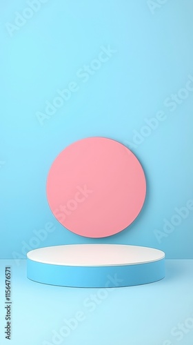Pastel Pink Circle Blue Platform Minimalist Product Display Background