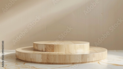 Pastel shades wooden podium abstract scene. Empty stage minimalistic boho design background. Stand product showcase on beige background.