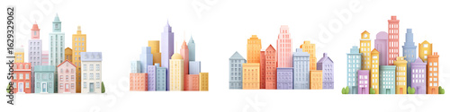 Pastel Watercolor Cityscape Illustration Set - Modern Urban Design