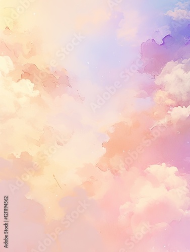 Pastel-colored abstract cloud background in dreamy, ethereal watercolor style, featuring soft hues of pink, blue, and purple for a serene