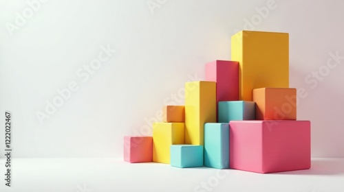 Pastel-Colored Cubes Arranged in an Ascending Pattern Against a White Background Illustrating Growth and Development