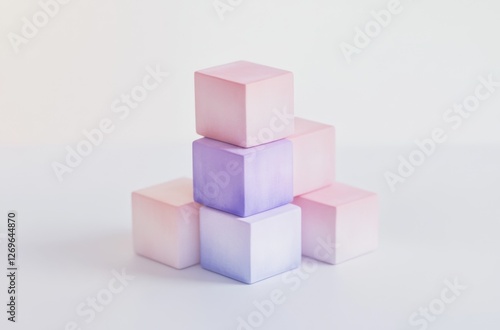 Pastel-colored wooden blocks stacked in pyramid shape on white background