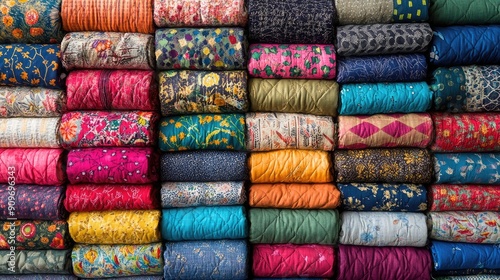 Patchwork quilt fabric with various colorful patterns, eclectic texture