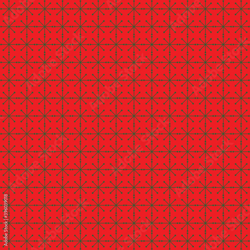 Pattern - red snowflakes on a green background in a square arrangement.