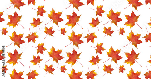 Pattern red maple leaf in autumn on a white background. Beautiful autumn background for your design.