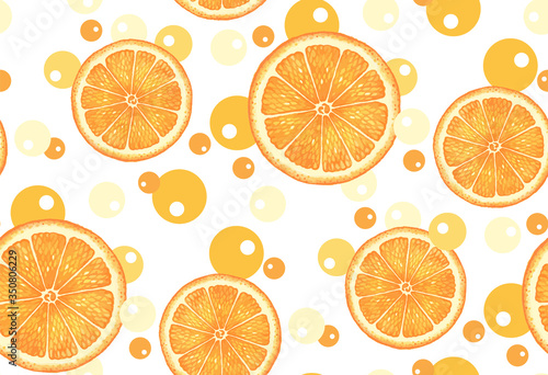 Pattern with citrus. Watercolor orange with circles. Suitable for curtains, wallpaper, fabrics, wrapping paper.