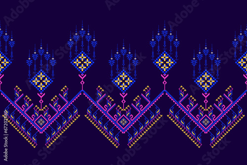 pattern with elementEthnic abstract pixel art. Ethnic pattern design with flower shapes used in fabric design.