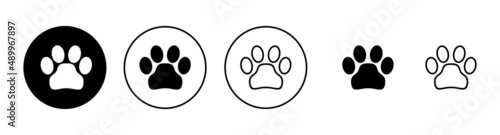 Paw icons set. paw print sign and symbol. dog or cat paw