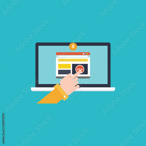 Pay Per Click internet marketing concept - flat vector illustration. PPC advertising and conversion.