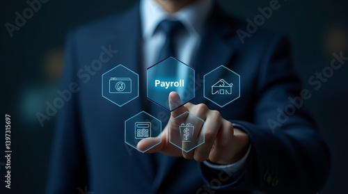 Payroll Management and Financial Processing System. employee salaries, Payroll" feature amidst a dynamic array of financial icons