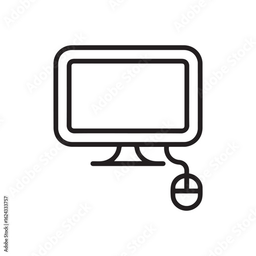 PC Monitor with Wired Mouse – Line Art Vector Icon for Workspace and Technology Theme