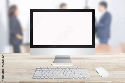 PC with blank screen on table.