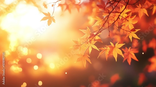 peaceful autumn scenery with golden maple leaves and red foliage, stunning forest landscape with warm sunlight illuminating the beauty of fall