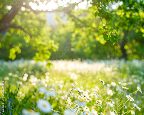 Peaceful Daisy Meadow in Soft Focus – Bright Spring Summer Nature Scene