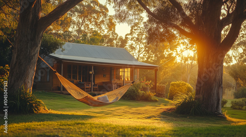 Peaceful Hammock Between Trees in a Sunny Countryside