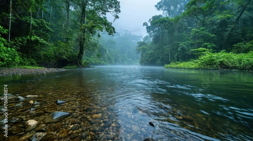 peaceful riverbank with a lush forest backdrop, illustrating the importance of preserving waterways and their ecosystems