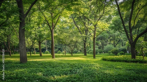 Peaceful scene of tall trees and lush vegetation in a serene public park, offering a tranquil retreat from the hustle and bustle of the city.