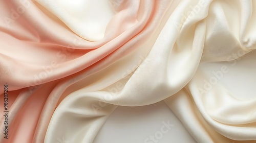 Peach and ivory fabric drapes softly, creating an elegant background texture full of flow and grace.