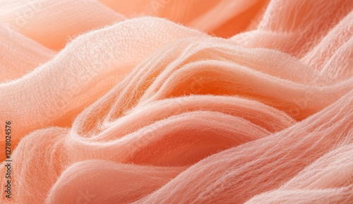Peach fabric, soft folds, textured background, studio shot, textile design