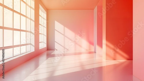 Peach pastel luxury studio gradient wall and floor background in empty room with bright light.