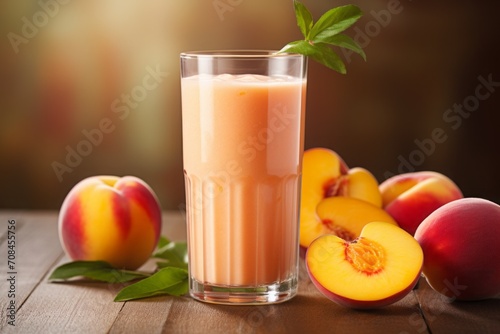 peach smoothie. a healthy fresh fruit drink in a glass on the table.