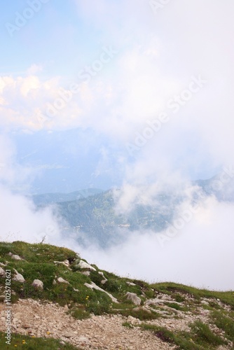 peak in the Austrian Alps. It's foggy