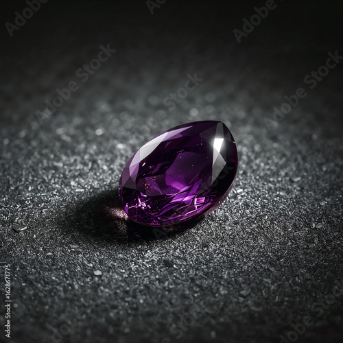 Pear Cut Amethyst Gemstone with Faceted Surfaces on Dark Textured Background purple