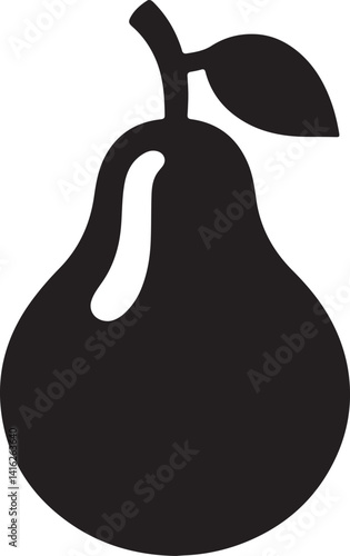 Pear Fruit Black Silhouette Vector, Minimalist Clipart & Botanical Fruit Design