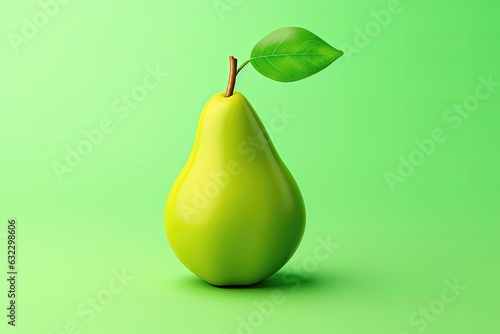 Pear with leaf isolated on green background. 3d render illustration