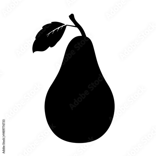 Pear with Leaf Silhouette Vector Illustration