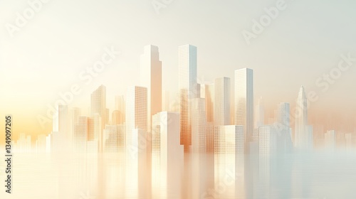 Pearl-White Floating City Outline with Light Gray Gridlines, Geometric Skyscraper Silhouettes, Soft Sand-Beige Gradient Accents.