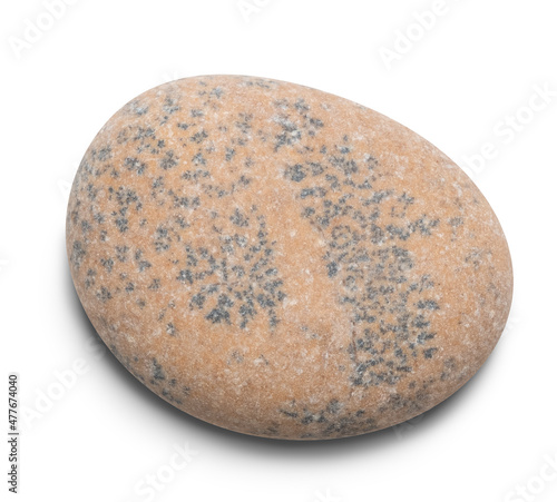 Pebble. Smooth red sea stone isolated on white background with shadows, clipping path for isolation without shadows on white
