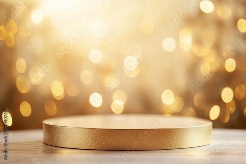 Pedestal for product display presentation in golden blurry bokeh Festive showcase.