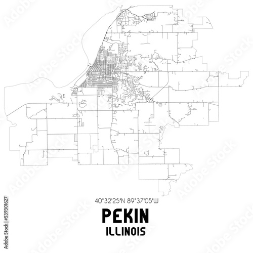 Pekin Illinois. US street map with black and white lines.